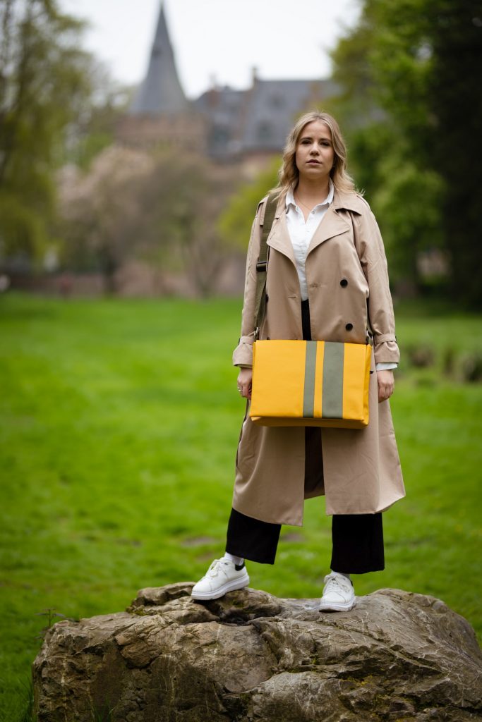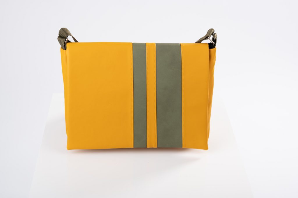 Der Tragegurt ist individuell verstellbar. Die Tasche, die in verschiedenen Farbkombinationen und Designs erhältlich.