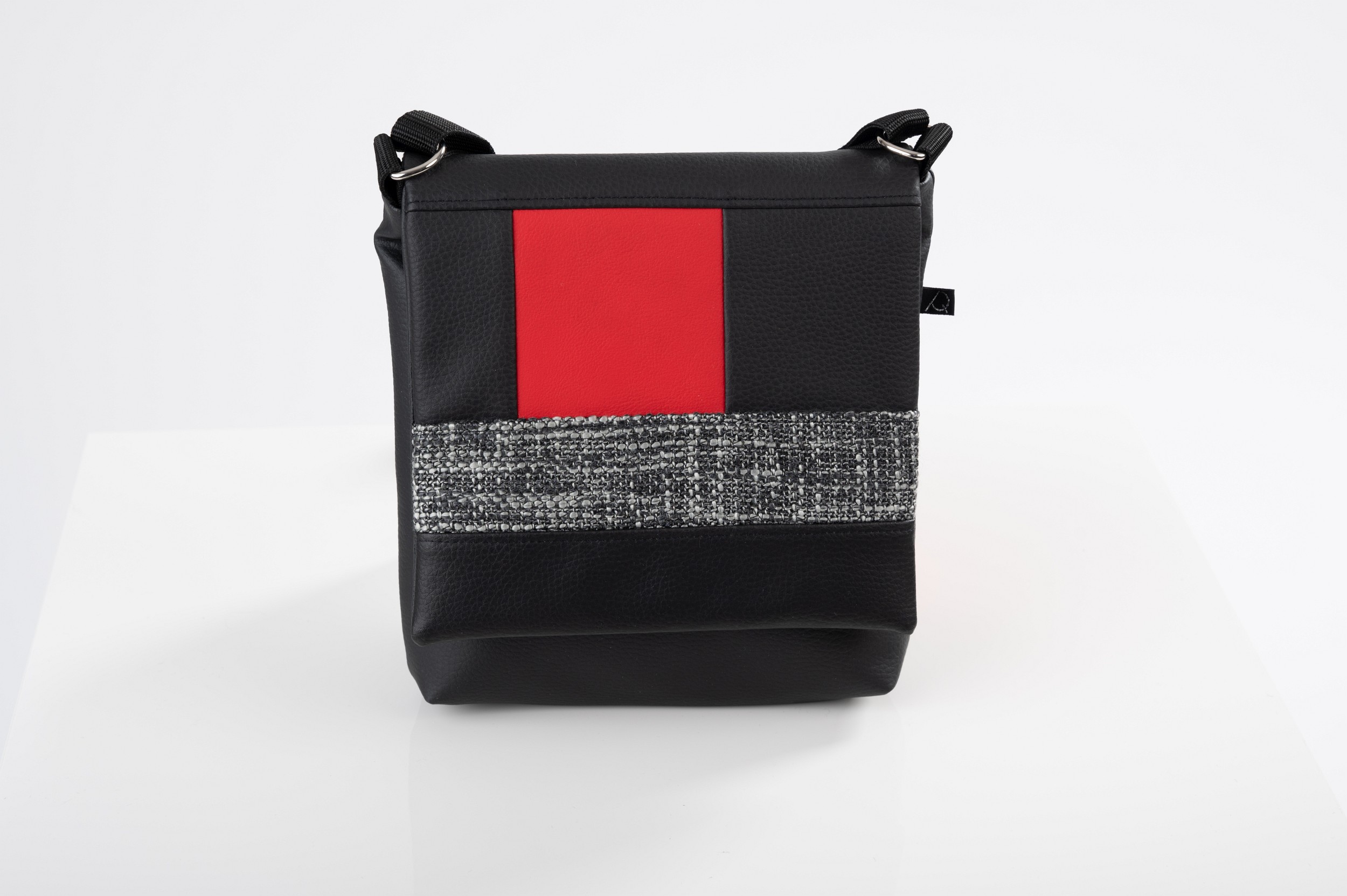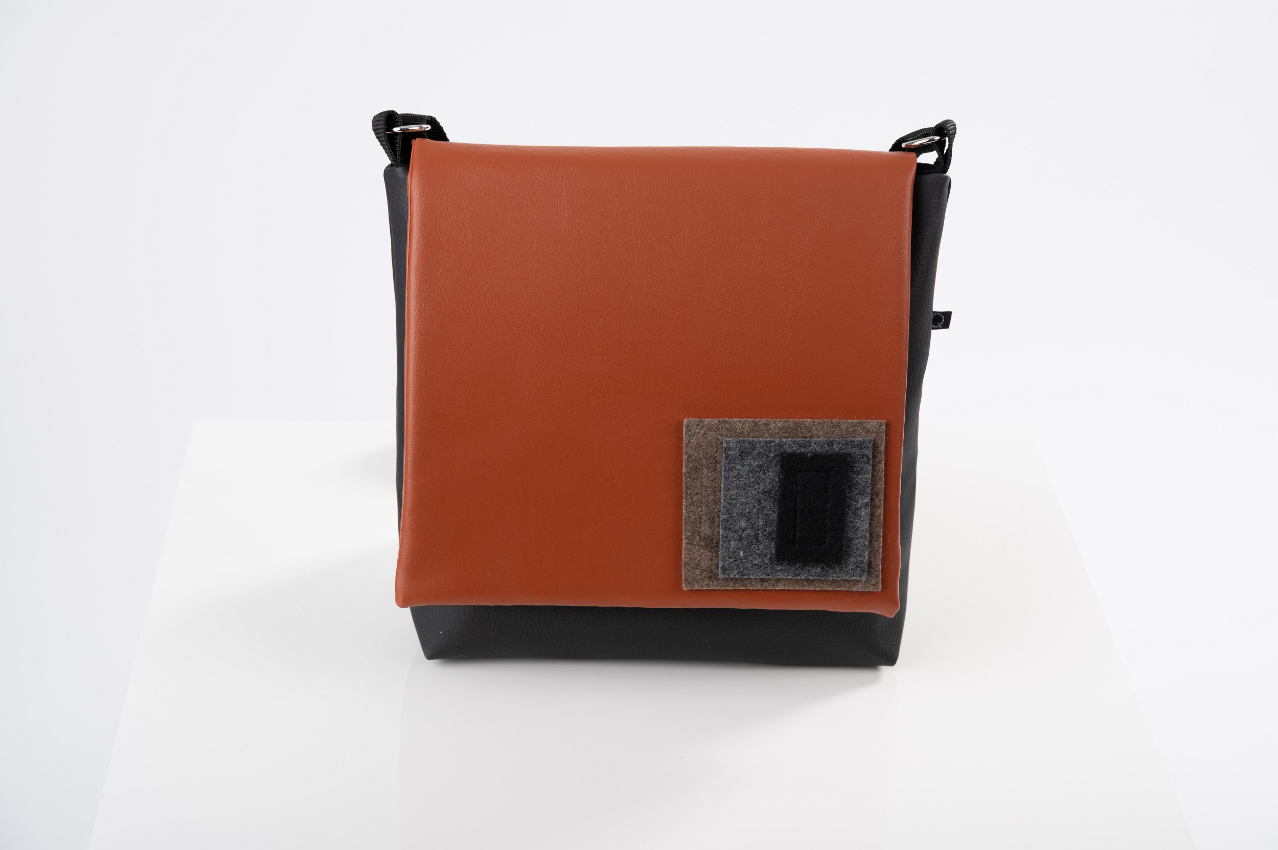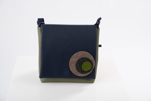 Das aus strapazierfähigem Kunstleder und Stoff gearbeitete Modell ist standardmäßig mit Innentasche aus Filz mit zwei Fächern für z.B. Mobiltelefon, Geldbörse oder Schlüssel ausgestattet. Die Tasche wird mittels Klettverschluss geschlossen.