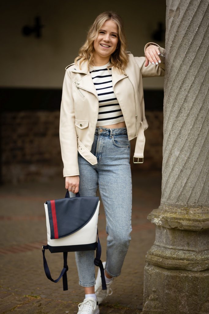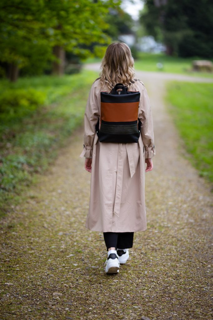 Die größere Variante des Modells Happiness hat hingegen Platz für einen Laptop und besticht durch seine praktischen Details wie Rückenfach mit Reißverschluss, Innentaschen und Karabinerschnur für den Schlüsselbund.